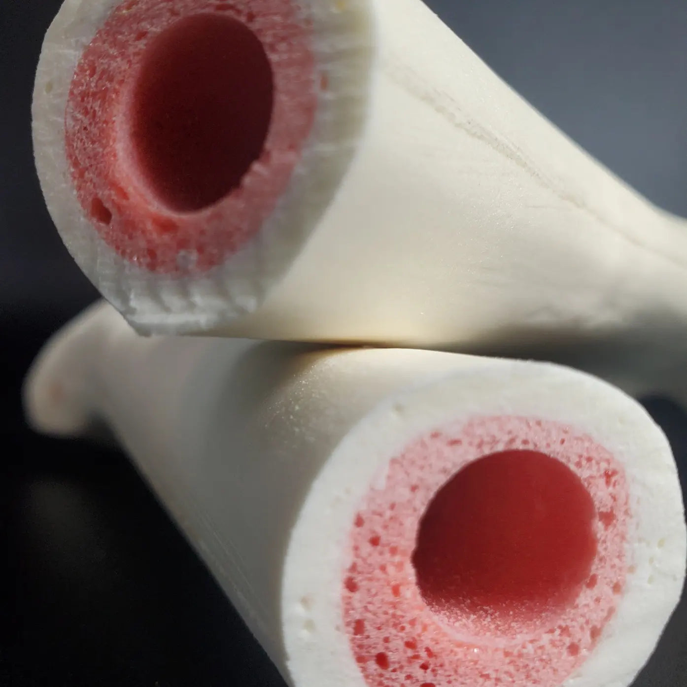 A two-step production process that starts with a dense polyurethane cortical shell, and finished with softer cancellous foam center. These are ideal demos for nailing, reaming, and fracture fixation. They provide more realistic tactical feedback during demonstrations.
